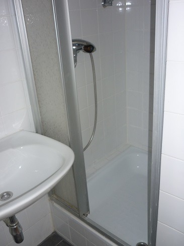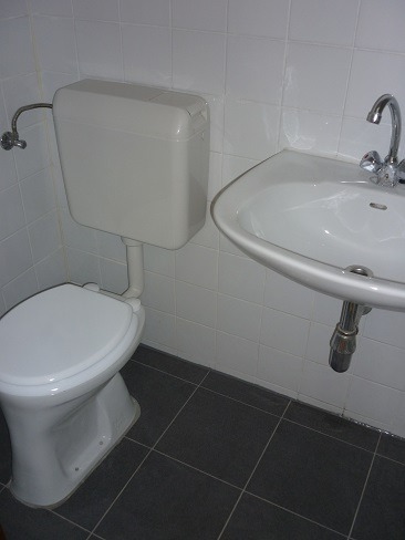 Badezimmer: (2,3m²) mit WC und Dusche, Waschbecken,