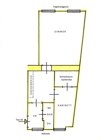 gassenseitig und hofseitig im 2. Stock (kein Lift) gelegen