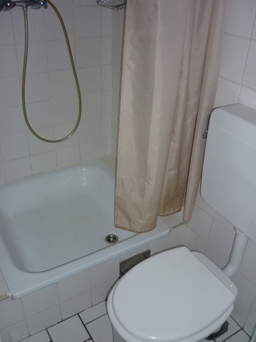 Badezimmer: (2,8m²) mit WC, Dusche, Waschtisch,