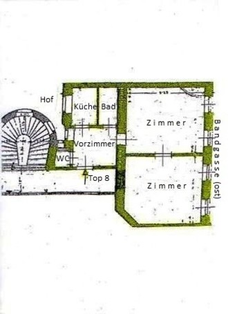 Hell und sonnig, 3. Stock (kein Lift), ostseitig zur Bandgasse